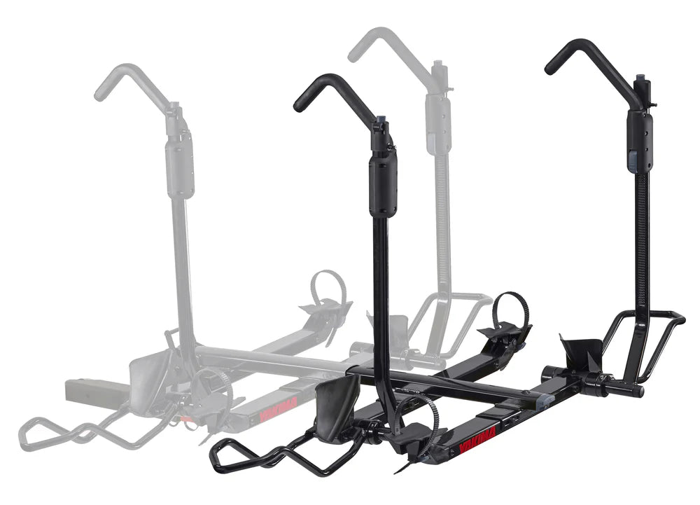 Great for families, double dates, or bringing your entire bike quiver, the HoldUp EVO +2 turns the HoldUp EVO 2" into a four-bike carrier. It’s versatile enough to handle most bikes, from BMX to fat tyre bikes. The StrongArm hook secures the bikes at their wheels, protecting carbon frames and painted surfaces. The whole unit can still tilt down and out of the way with bikes loaded, for easy rear-of-vehicle access, and the empty trays fold up and out of the way when not in use. Included SKS locks for each bike give you peace of mind.